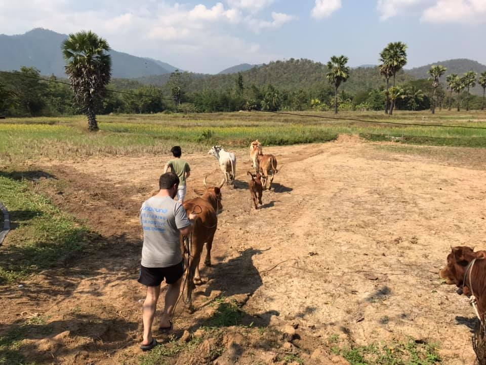 Today we headed to an organic farm. Here we met the owners and the local family who live a sufficient life. An important concept in Thailand that refers to how the farming Thai people choose to live self-sufficiently using their land equally to grow rice, fruit and cultivate cows, pigs, chickens and fish.