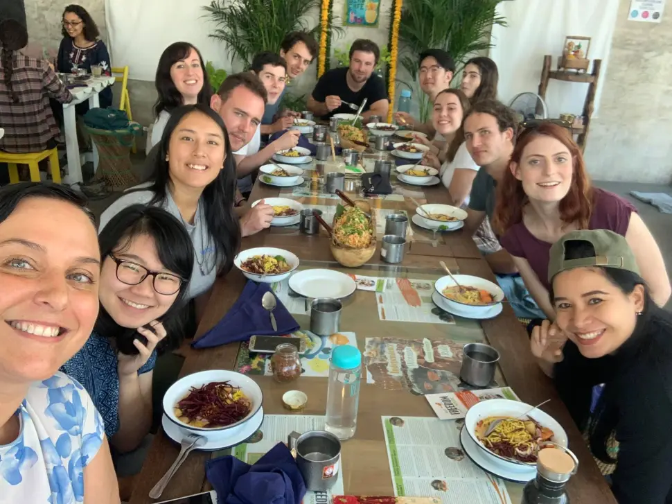 One of our last activities was following along with a health and fitness class run regularly at a temple. The upbeat songs and steps were enough to get everyone’s heart beats racing. Finally, the day ended with yet another delicious dinner followed by some fun group trivia.