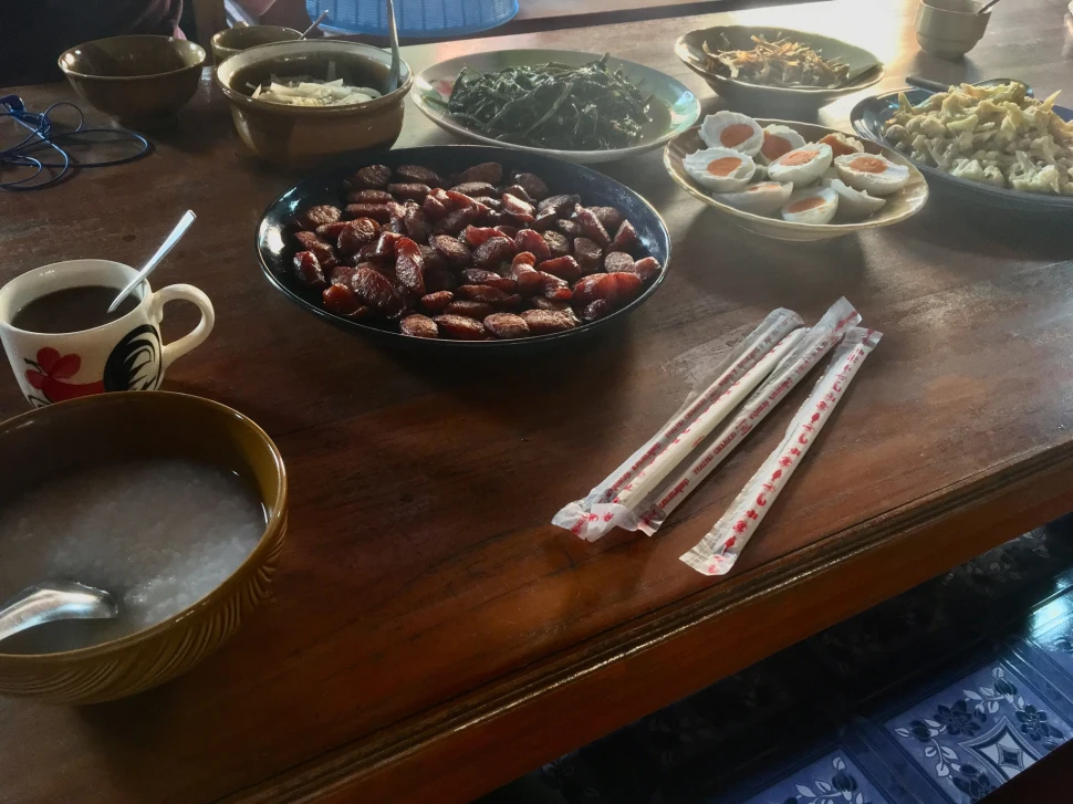 It was the group’s last time waking up in the homestay tonight. For our first activity, we painted bamboo cups with images and inspirations we found from the community, such as the flora and fauna and the activities we have partaken in so far. We talked and laughed with the elders, telling them what we have enjoyed about Pha Pang and how grateful we are for their hospitality. The elders then blessed us with good luck and each elder tied a white strand of wool around our wrists, so that the luckiest of our group eventually ended up with ten woollen bracelets.