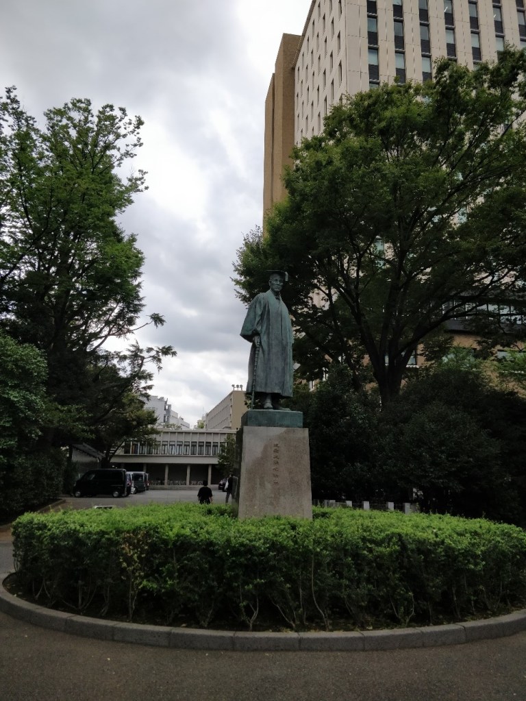 The iconic statue of Shigenobu Okuma, the founder of Waseda University